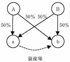 しかし、現実には、次のようなケースのaとbの分割であっても、対価を省略することに何の問題もないわけであり、「省略できる形態を示すもの」(上記引用)というだけでは、次のようなケースのaとbの無対価分割を非適格分割とする上記の適格判定の仕組みの理由を説明しきれない。